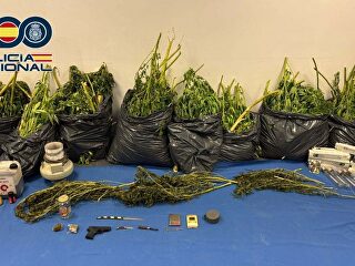 Durante el registro de la vivienda, los investigadores hallaron un total de 215 plantas, además de siete recipientes con cogollos listos para su comercialización.