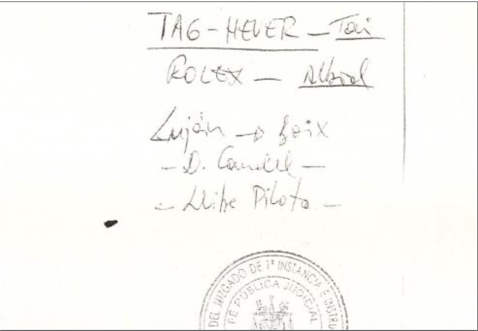 La trama Azud barajó mucho dinero. La investigación de la Unidad Central Operativa (UCO) de la Guardia Civil ha desvelado ya pagos en costosas comidas, gastos en relojes de casi 65.000 euros y enchufes varios como el de la ex de Ximo Puig. Ahora la Guardia Civil ha detectado anotaciones del cabecilla de la trama con las marcas de dos de los más conocidos relojes de lujo: Rolex y Tag Heuer.