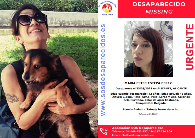 María Ester Estepa Pérez desapareció el 23 de agosto de 2023 en Alicante. El día antes habló con su madre -como era costumbre- por última vez. Su familia vive en un pueblo de Sevilla y el contacto telefónico era diario desde que se independizó, hace alrededor de diez años. Desde entonces, ha vivido en varias ciudades de la Comunidad Valenciana: Elche, Alicante, Santa Pola y vuelta a Alicante. No pasaba por una buena racha y se estaba planteando volver al domicilio familiar.