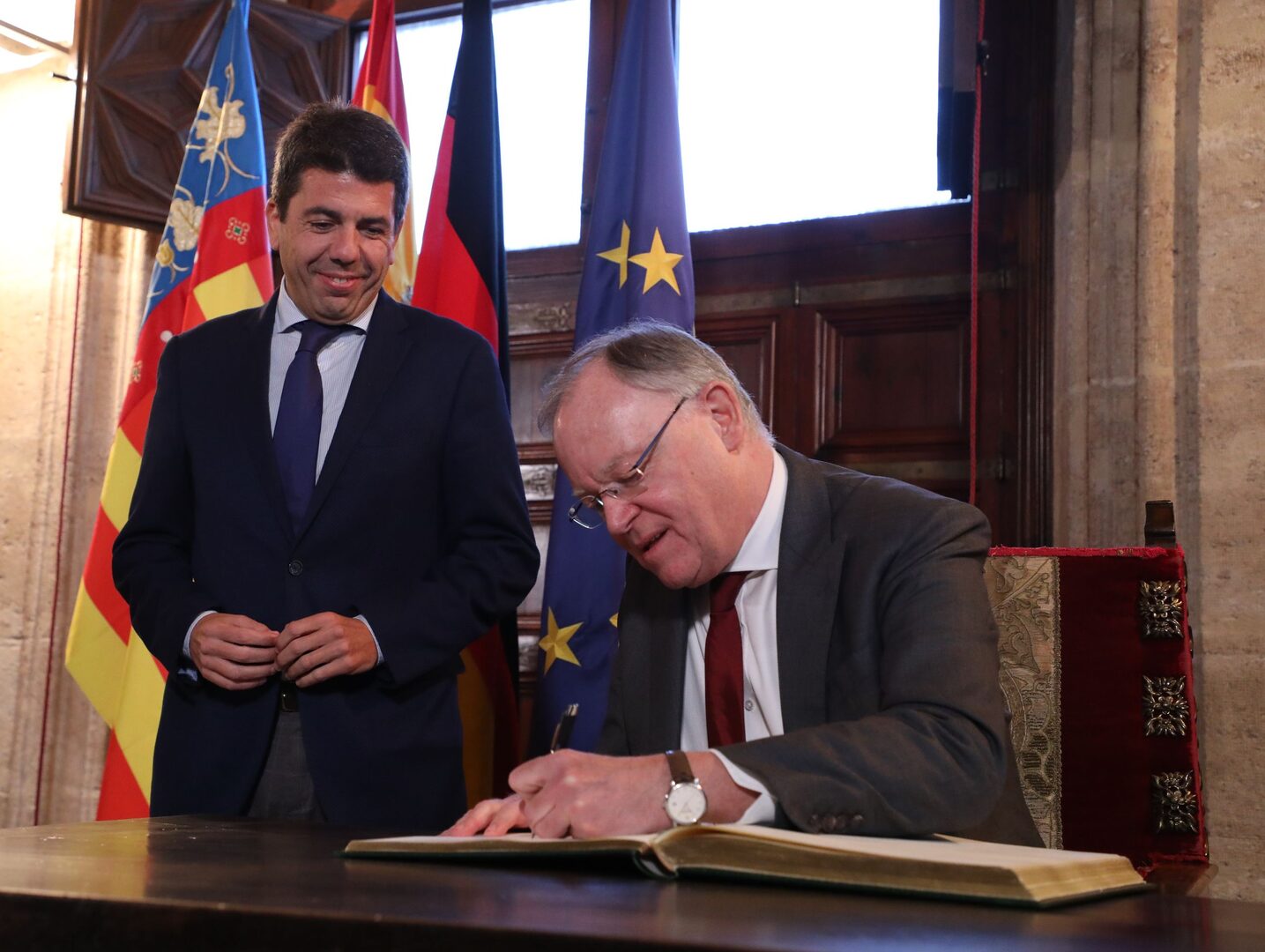 El presidente de la Generalidad, Carlos Mazón, y el presidente del Estado federado alemán de Baja Sajonia, Stephan Weil, han firmado el acuerdo de colaboración para trabajar conjuntamente en el desarrollo tecnológico, la innovación y la investigación en materia energética y de movilidad sostenible.