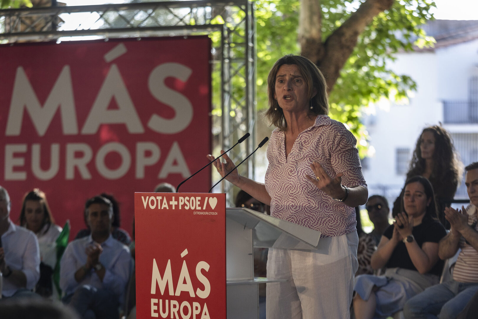 "La número uno en la lista de los socialistas a estas elecciones, Teresa Ribera, es la peor candidata posible para nuestra tierra, la prueba de que Sánchez se ríe de la Comunidad Valenciana", dictaminó el presidente valenciano. "Esta ministra ha recortado el Tajo-Segura 26 veces, no ha enviado el caudal ecológico prometido a la Albufera, es la que está cargándose nuestras playas dejando a la gente sin casa, sin playas, sin propiedad privada…".