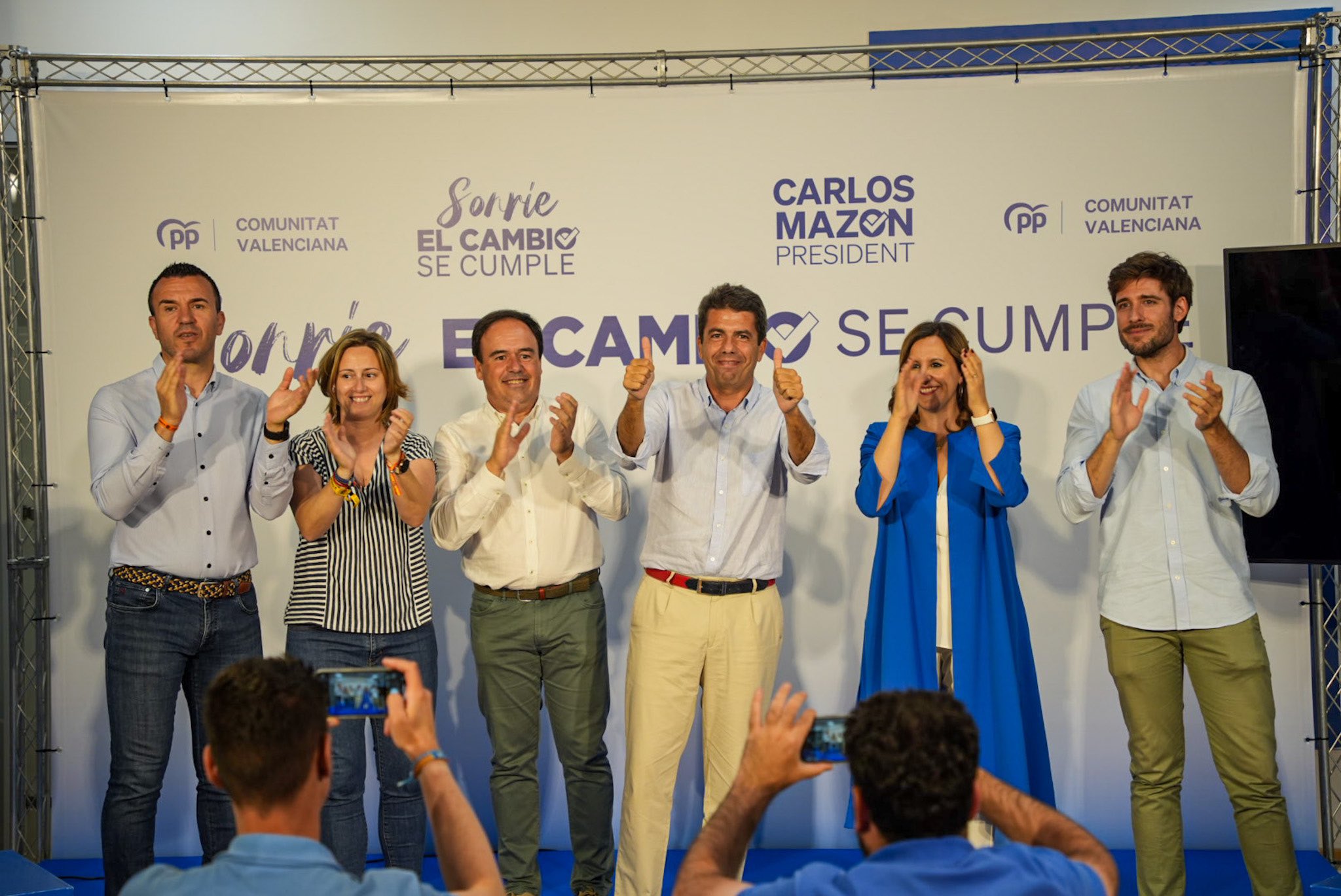 El presidente de la Generalitat y presidente del PPCV, Carlos Mazón, ha celebrado la victoria "clara y contundente" del PP en las elecciones europeas de este 9 de junio en la Comunidad Valenciana, cuyo resultado considera como respaldo y consolidación a las "políticas del cambio" que desarrolla el gobierno que preside en la autonomía. "Es una gran victoria y una gran ratificación", ha valorado.
