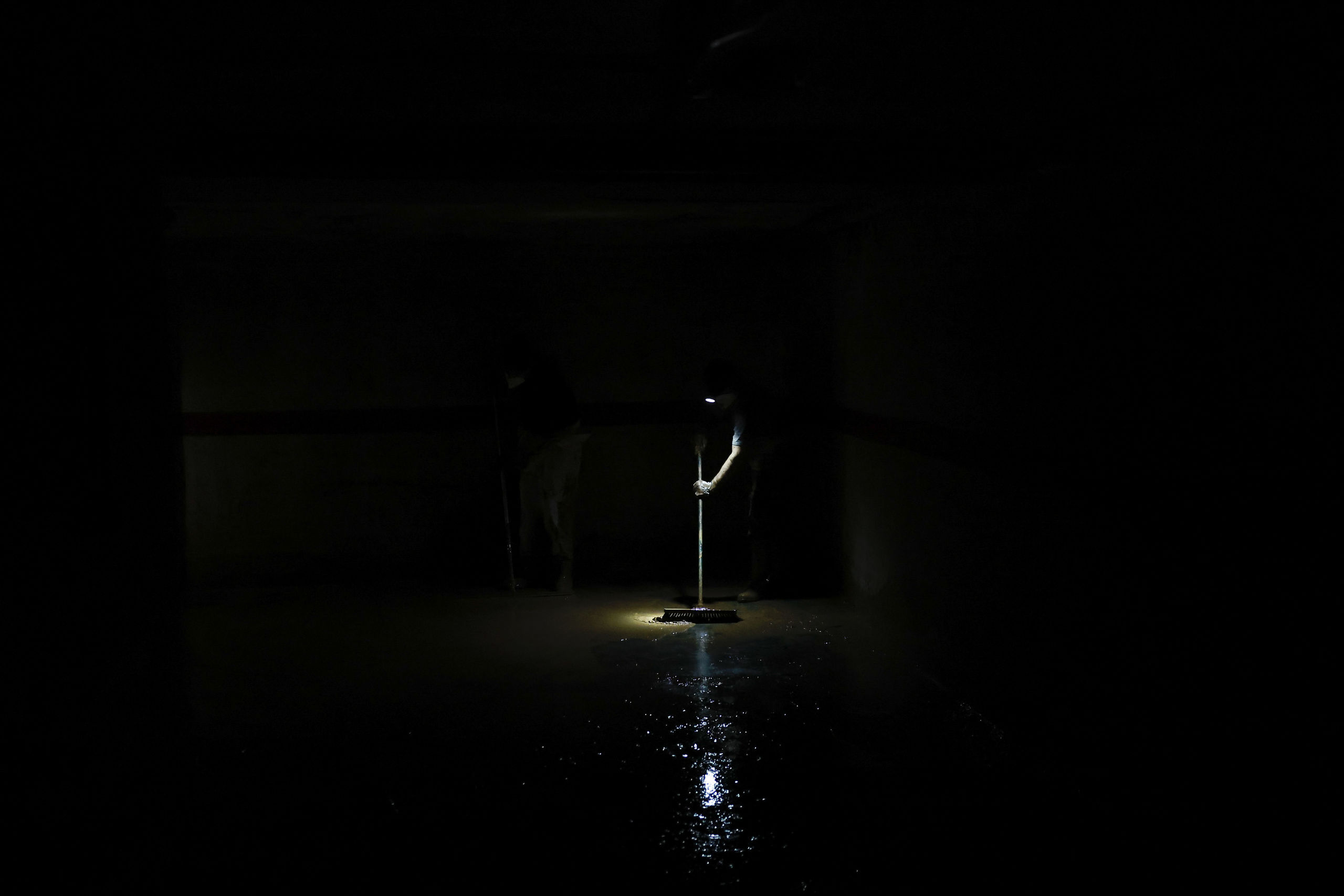Aldaia es otra de las localidades que sufre las consecuencias de las inundaciones de la DANA. Los garajes son algunos de los lugares más afectados, como se puede observar en la foto. A pesar de la oscuridad, se identifica a una persona limpiando el interior de un garaje en Aldaia.