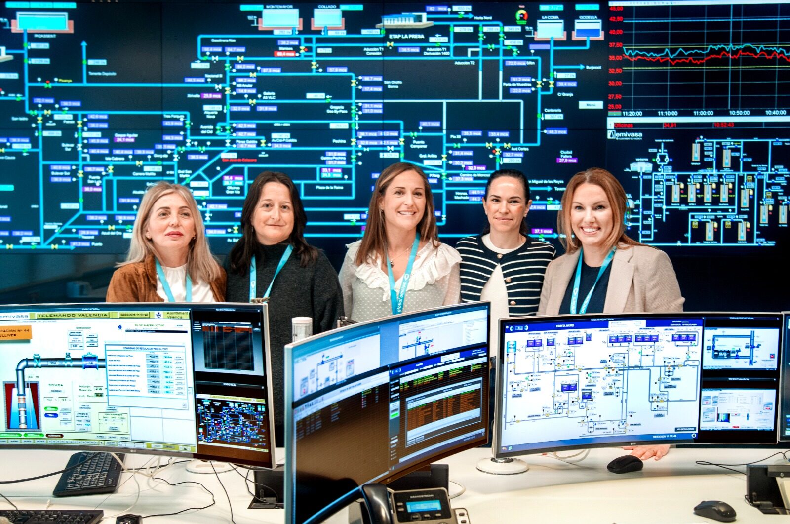 En este Día Internacional de la Mujer, estas cinco trabajadoras de la empresa Global Omnium reflejan el peso femenino en su plantilla y, al igual que hacen con dedicación y entrega el resto de días del año, seguirán vigilando el mantenimiento, el rendimiento de la red, la atención de los avisos y las reparaciones que puedan surgir para que todo transcurra con normalidad.