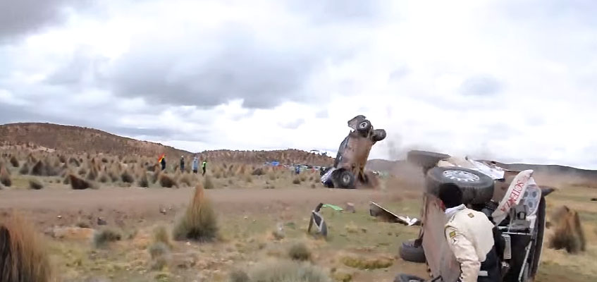 El rally Dakar es más peligroso de lo que creemos. La prueba, este vídeo, grabado por un vídeoaficionado, mientras varios operarios ayudaban a levantar uno de los coches que había sufrido un accidente