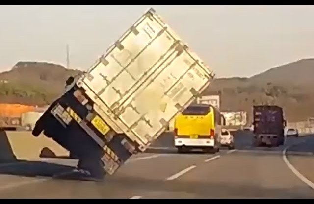 Un vídeo muestra la increíble habilidad al volante de un camionero en Corea de Sur, que al frenar bruscamente perdió el control del vehículo.