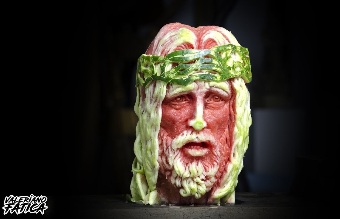 Así se esculpe un Jesucristo hiperrealista en una sandía