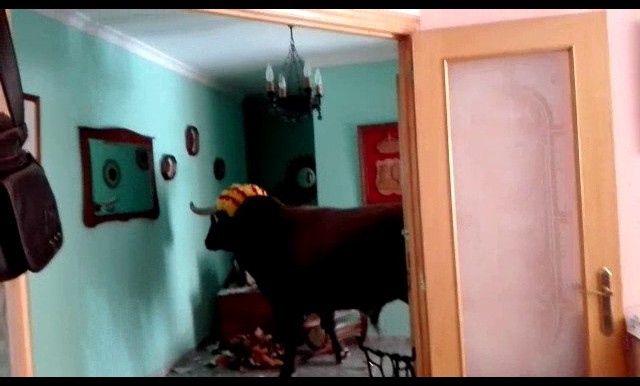 Los habitantes de una casa en el centro de una localidad levantina se llevaron un tremendo susto cuando veían el tradicional encierro que se celebra en las fiestas locales.
