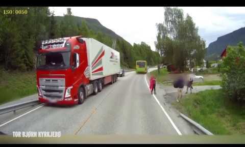 Frenada milagrosa de un camión para evitar atropellar a un niño