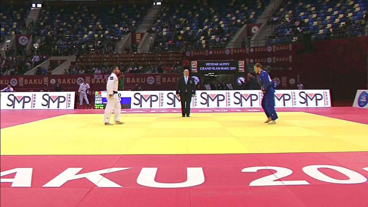El deportista portugués Anri Egutidze fue descalificado del Grand Slam de judo, que se desarrolla en Bakú (Azerbaiyán) al caer su móvil sobre el tatami en pleno combate con el sueco Robin Pacek.