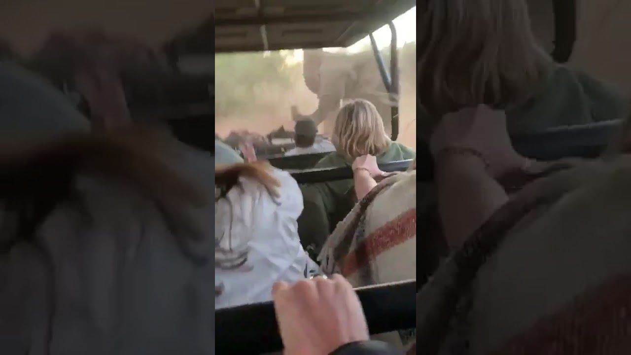 La escalofriante escena tuvo lugar en Sudáfrica donde un grupo de turistas australianos estaba realizando un safari en un Jeep cuando fueron embestidos por un gran elefante.